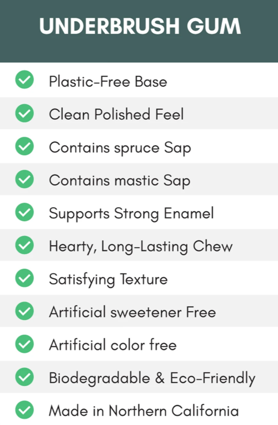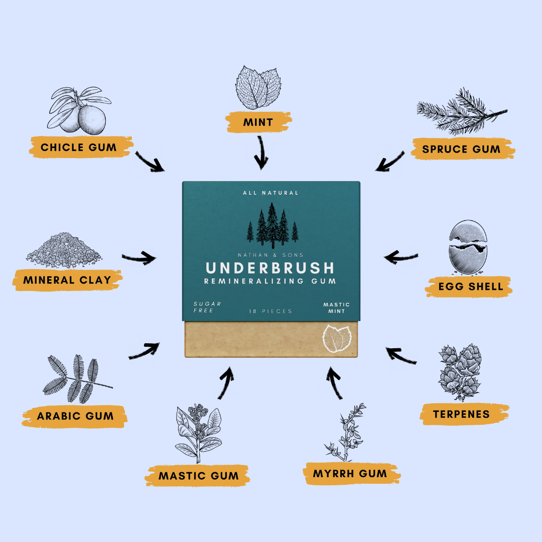 Our gum is packed with the vital minerals our teeth need to remineralize and repair effectively. In addition to phosphorus, iron, copper and zinc, our gum contains hydroxyapatite which is the same compound our teeth are made of. This combination of minerals helps to rebuild tooth enamel and combat decay.